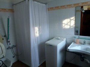 A large double bedroom; bathroom with shower and washing machine. Perfectly equipped for the disabled.