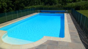 In the ground are the large heated and fenced pool with roman steps and a shallow and deep end for young children.